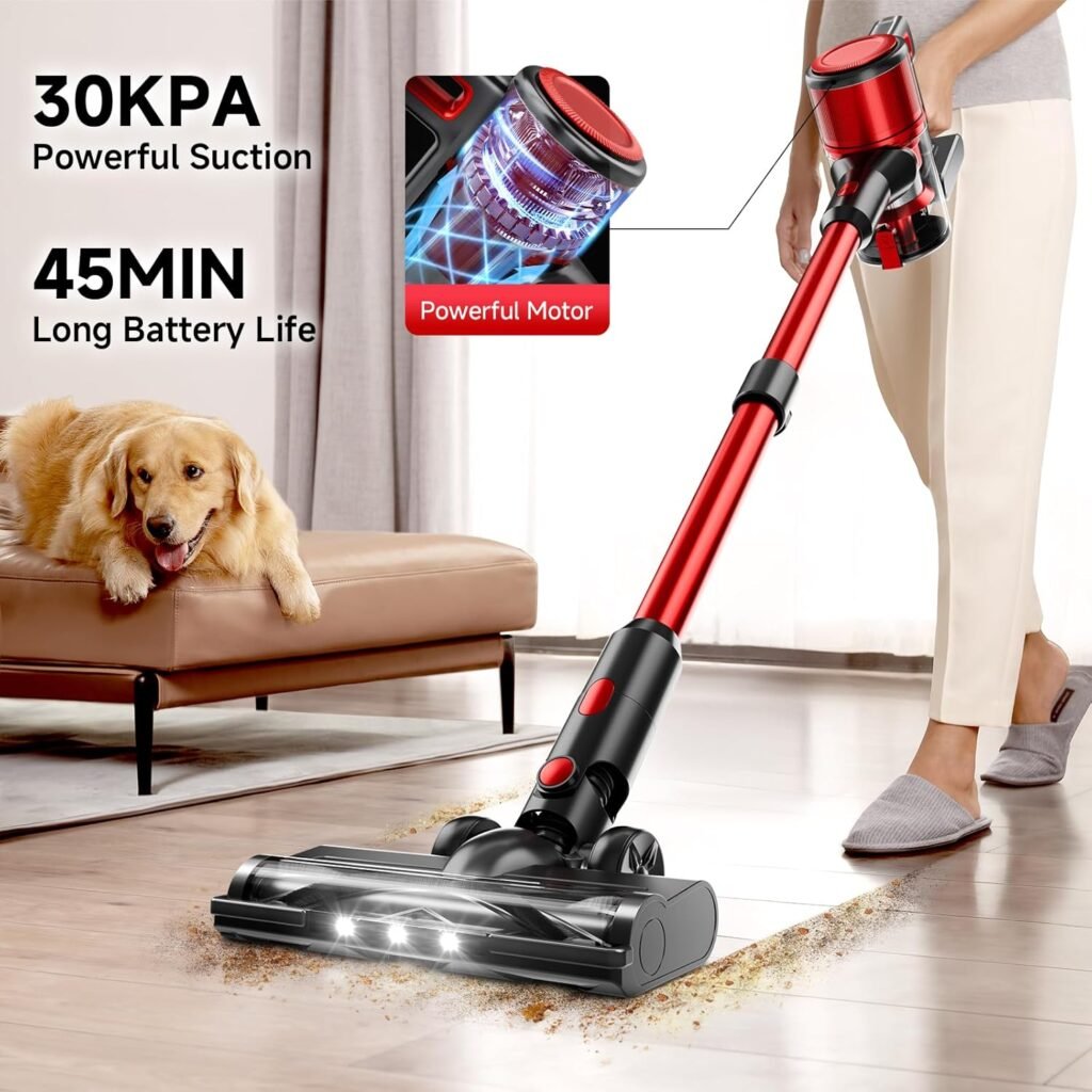 - 30Kpa Suction Performance: Handles dust, debris, pet hair, and everyday dirt on floors and carpets.