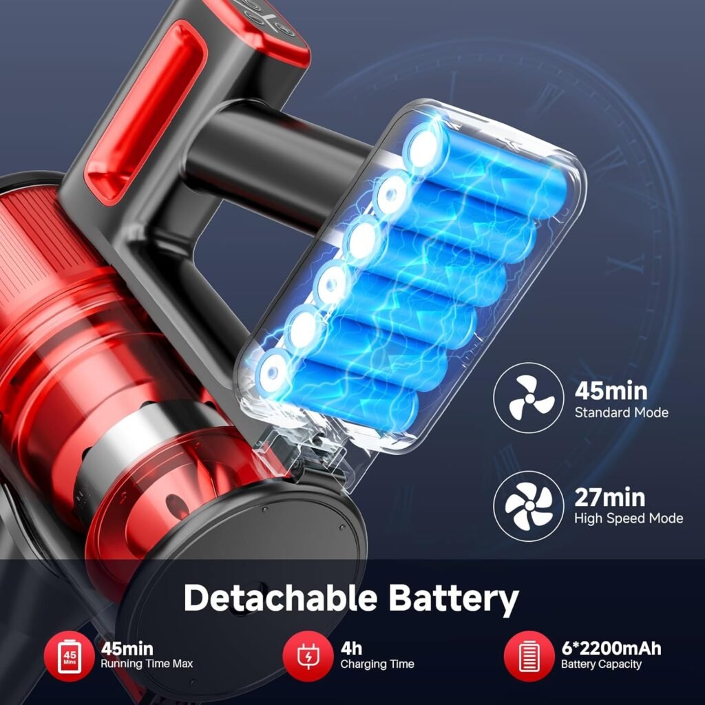 - Detachable Battery: Up to 45 minutes of cleaning in standard mode; easy to swap or recharge.