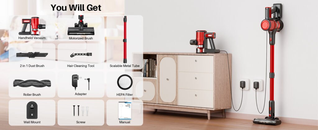 - Wall Mount Included: Keeps the vacuum and accessories organized.